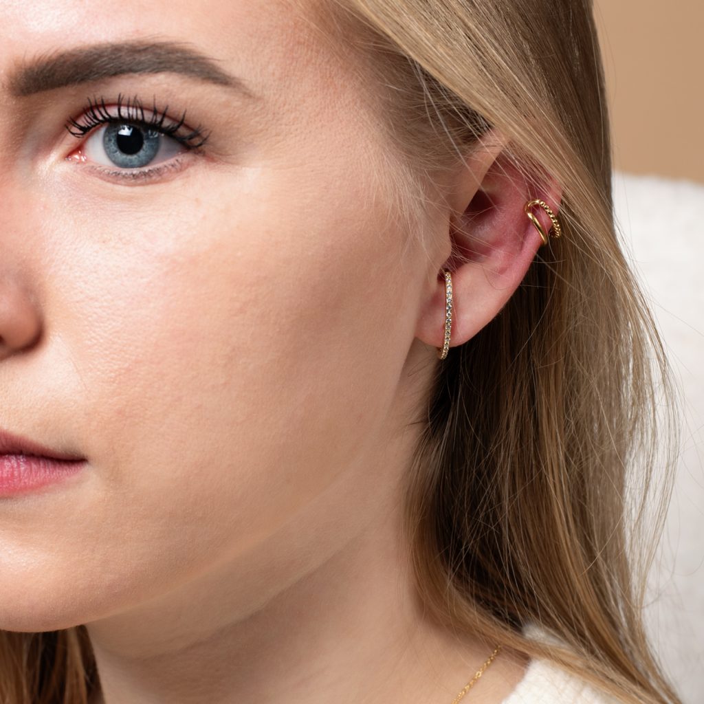 €19.95Deze leuke earcuff is helemaal hot! Deze 925 zilveren earcuff met zirkonia stenen heeft een afmeting van 12,5 mm x 3 mm en wordt per stuk verkocht.